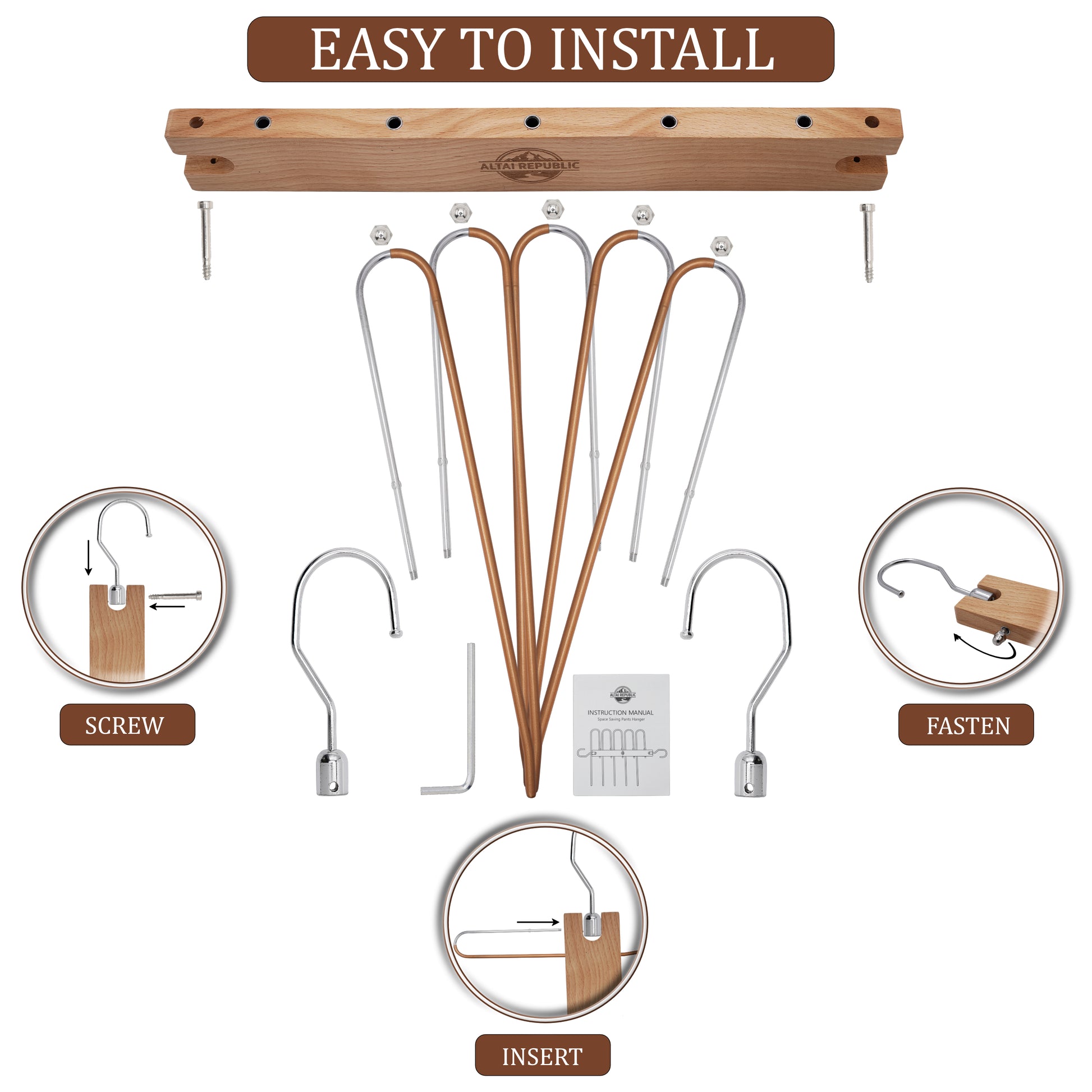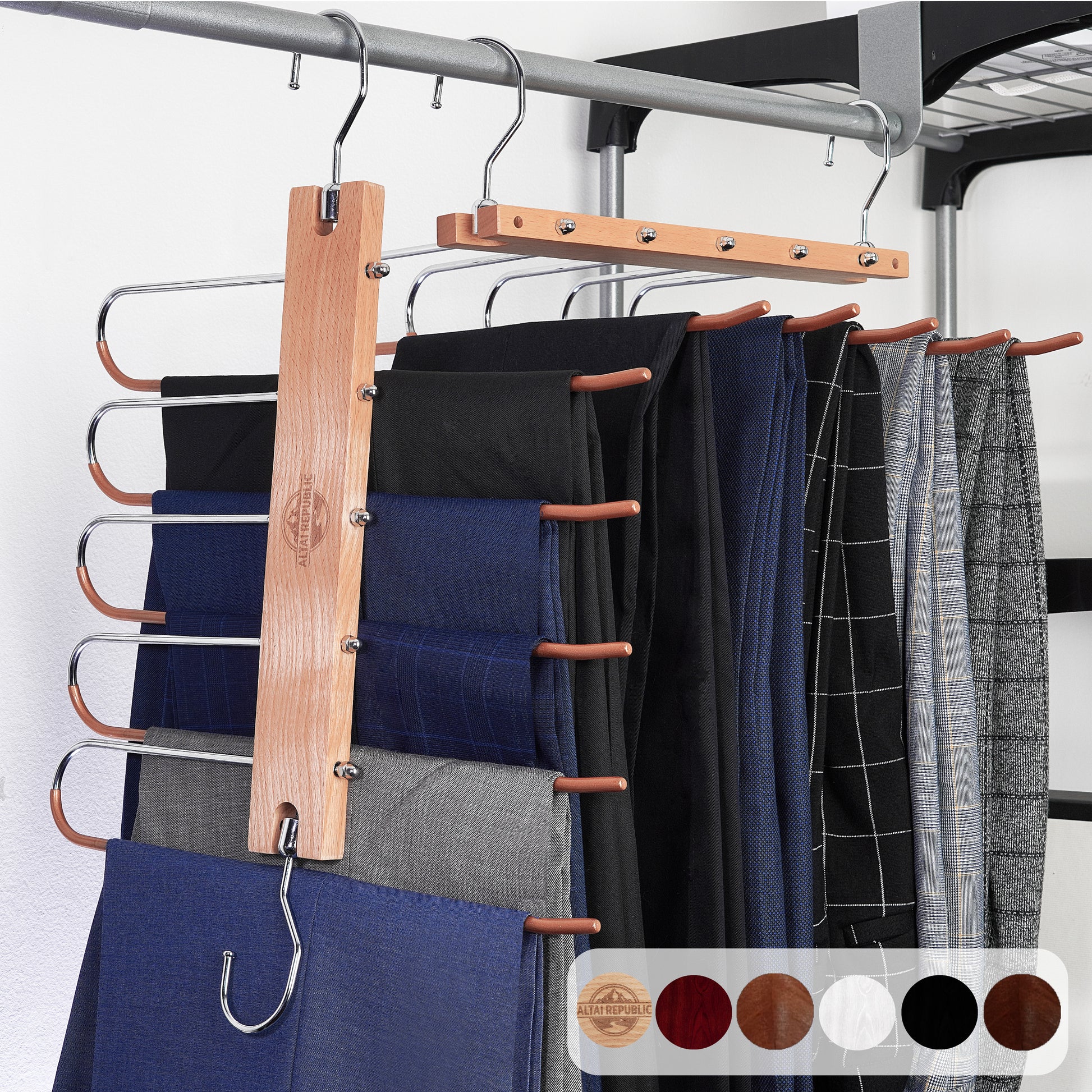 Altai Republic Beech Wooden Pants Hangers Space Saver - Trouser Hanger, Space-Saving 5-in-1 Trouser Hanger, Stainless Steel Extendible, Multi Hanger, Magic Hanger, Wardrobe Clothes Hanger Holder
